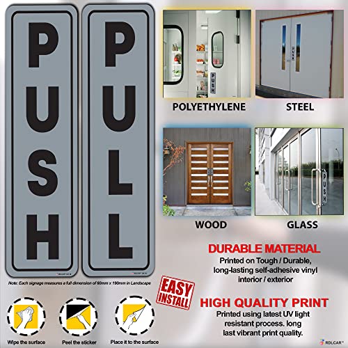 RDLCAR Segnali per porta push-pull, avviso di sicurezza per uso interno ed esterno, set di 10 adesivi, autoadesivi, bastone permanente, facile installazione, vinile - 60 mm x 190 mm (argento)