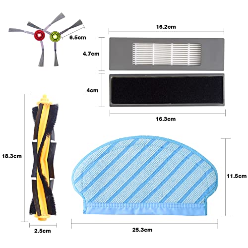 Rdutuok Set di 18 pezzi per filtri a pennello Wiping Cloth Set accessori di ricambio compatibili con Ecovacs Deebot Ozmo T8 T8 + T8 AIVI T8 MAX N8+ N8 Pro + T9+