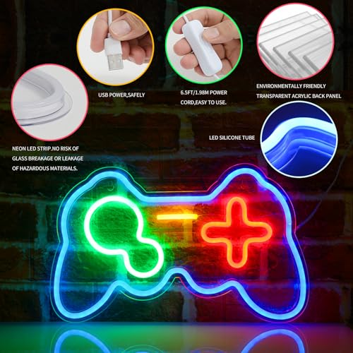 Decorazione da parete unica: la luce al neon USB Rdutuok a forma di gioco è un must per i giocatori o gli amanti dei giochi. Puoi usare queste insegne al neon del controller di gioco per decorare la tua sala giochi, migliorare l'atmosfera del gioco e aggiungere più personalità alla tua stanza!