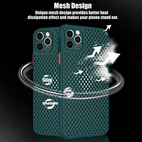 Rdyi6ba8 Cover per iPhone 12 Pro, Fotocamera Protezione Completa Ultra Leggero Morbido Silicone TPU Traspirante Mesh Design Protettiva Case per iPhone 12 Pro - Verde Scuro