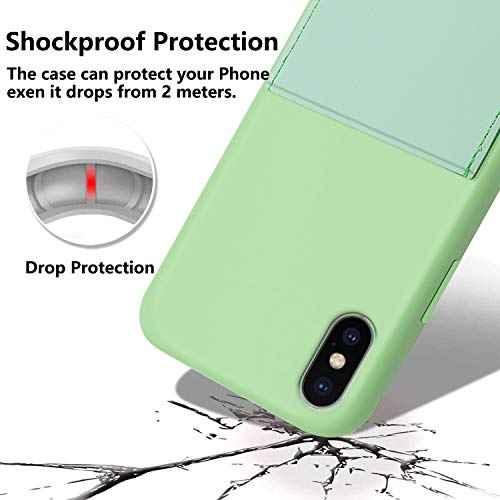 Rdyi6ba8 Cover in Silicone TPU Liquido per iPhone X/XS, con Porta Carte di Credito Custodia Antiscivolo Antiurto Case per iPhone X/XS - Verde