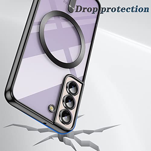 Rdyi6ba8 Magnetica Cover Compatibile con Samsung S21 Plus, Support MagSafe Trasparente TPU Silicone con [Protezione Fotocamera] Custodia Placcato Antiurto Case per Samsung Galaxy S21 Plus - Nero