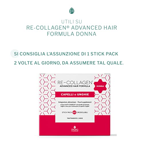 Re-Collagen Advanced Hair Formula Donna - Integratore Alimentare - Con aminoacidi, vitamine ed estratti vegetali - per capelli e unghie normali - 60 stick pack da 1,6 g