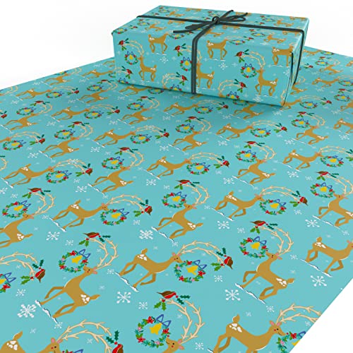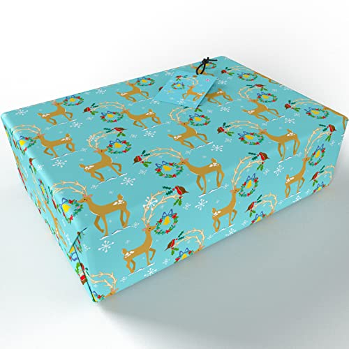 Re-wrapped - Christmas Bundle 1 - Renna, colombe & Robins - eco friendly riciclata carta da regalo - da incastro Vicky Scott Re-wrapped - Christmas Reindeer - 1 sheet (folded) with 2 matching swing tags of eco friendly recycled gift wrap wrapping paper - by UK designer Vicky Scott