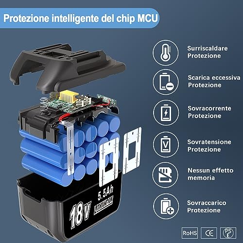 【CERTIFICAZIONE PROFESSIONALE】 Certificato CE, RoHS e PSE. Protezione contro sovraccarico, sovraccarico, surriscaldamento e cortocircuito. Nessun effetto memoria, ricarica in qualsiasi momento senza perdita di capacità, molto conveniente. Produttore testato per i requisiti dei prodotti OEM.
