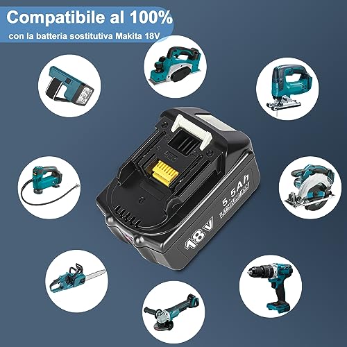 【REPLACEMENT BATTERY】Battery type: Li-ion | Voltage: 18V | Capacity: 5.5Ah / 5500mAh High capacity, longer battery life | Power: 99 watts | Removable and rechargeable | With LED indicator | Pack of 2 pieces.