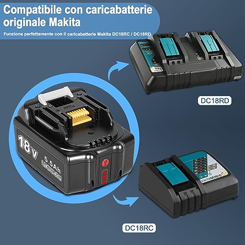 REACELL Batteria agli ioni di litio da 2 Pezzi 18V 5.5Ah Compatibile per Batteria Makita 18V BL1850 BL1860 BL1840 BL1845 BL1830 BL1850B BL1860B LXT-400 194204-5 194205-3, con Indicatore LED
