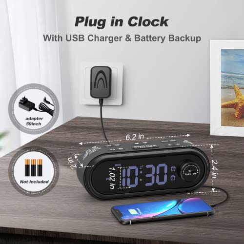 【Alimentazione CA con batteria di backup, caricatore USB】 Vieni con un adattatore di alimentazione lungo 59 ", basta collegarlo per l'accensione. 3 batterie di backup AAA mantengono l'orologio e le sveglie quando l'elettricità si interrompe, così puoi essere sicuro di svegliarti in tempo. Extra una porta USB sul retro, non dovrai più chinarti verso la presa per collegare il telefono.