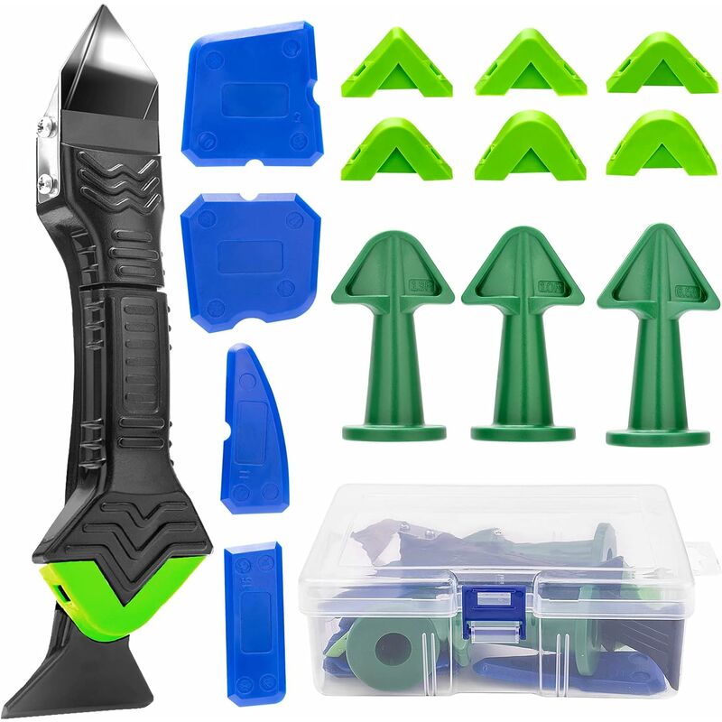 cuscinetto in silicone Sanheye include anche 5 cuscinetti in silicone. Cinque diversi raggi, inclusi 3R, 6R, 10R, 13R, 17R, creano cerchi variabili. fornisce oltre 10 bordi diversi per soddisfare le tue esigenze. le tue esigenze di sigillatura quando si sigillano diverse posizioni e angoli. Che tu sia un principiante o un esperto, il kit di sigillatura in silicone è una perfetta combinazione di strumenti per progetti di sigillatura interna ed esterna. Istruzioni: Il raschietto in acciaio inossidabile