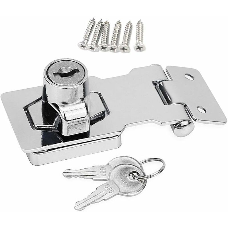 Materiale: ferro in acciaio cromato, nucleo della serratura in lega di zinco Metodo di installazione: avvitamento delle viti Il pacchetto include 1× Hasp Lock 6 × viti 2 × chiavi (ogni serratura ha la sua chiave univoca e non può aprire altre serrature) Robusta struttura in metallo, chiudiporta con serratura, facile da usare. installare e facile da installare. apri mentre ti rivolgi a;