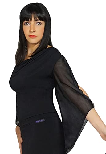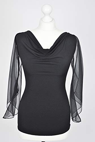 Ready4Dance Top Donna Nizza per Ballo da Sala, Danza Standard e Latino con Ampie Maniche Trasparenti