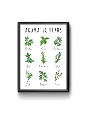 1 Poster con illustrazioni stile acquerello di Erbe Aromatiche (no cornice)