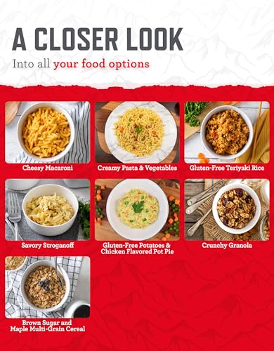 PACCHETTO DI SOPRAVVIVENZA VARIETÀ: Ottieni una selezione di 7 pasti disidratati unici e gustosi pronti da mangiare in ogni busta.