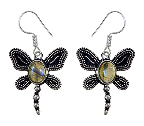 Reale Labradorite Pietra Preziosa Goccia Ciondola Farfalla Orecchino Per Donne, Autentico Fatto A Mano Moda Progettista Placcato Argento Orecchino, Tribale E Etnico Gioielli Per Feste