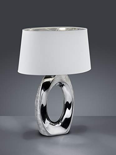 Paralume in tessuto bianco, base di colore argento