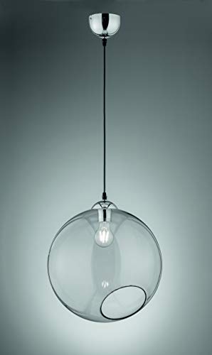 Reality Leuchten Clooney R30071954 - Lampadario a sospensione in metallo cromato, vetro fumo, 1 lampadina E27