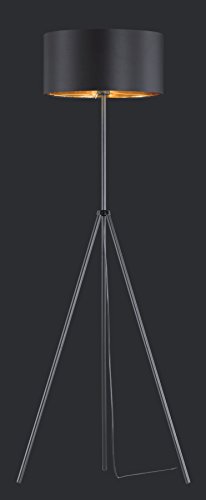 Reality Leuchten Lampada da Pavimento E27, 60 W, Schwarz Matt/Goldfarbig, 55 x 55 x 150 cm