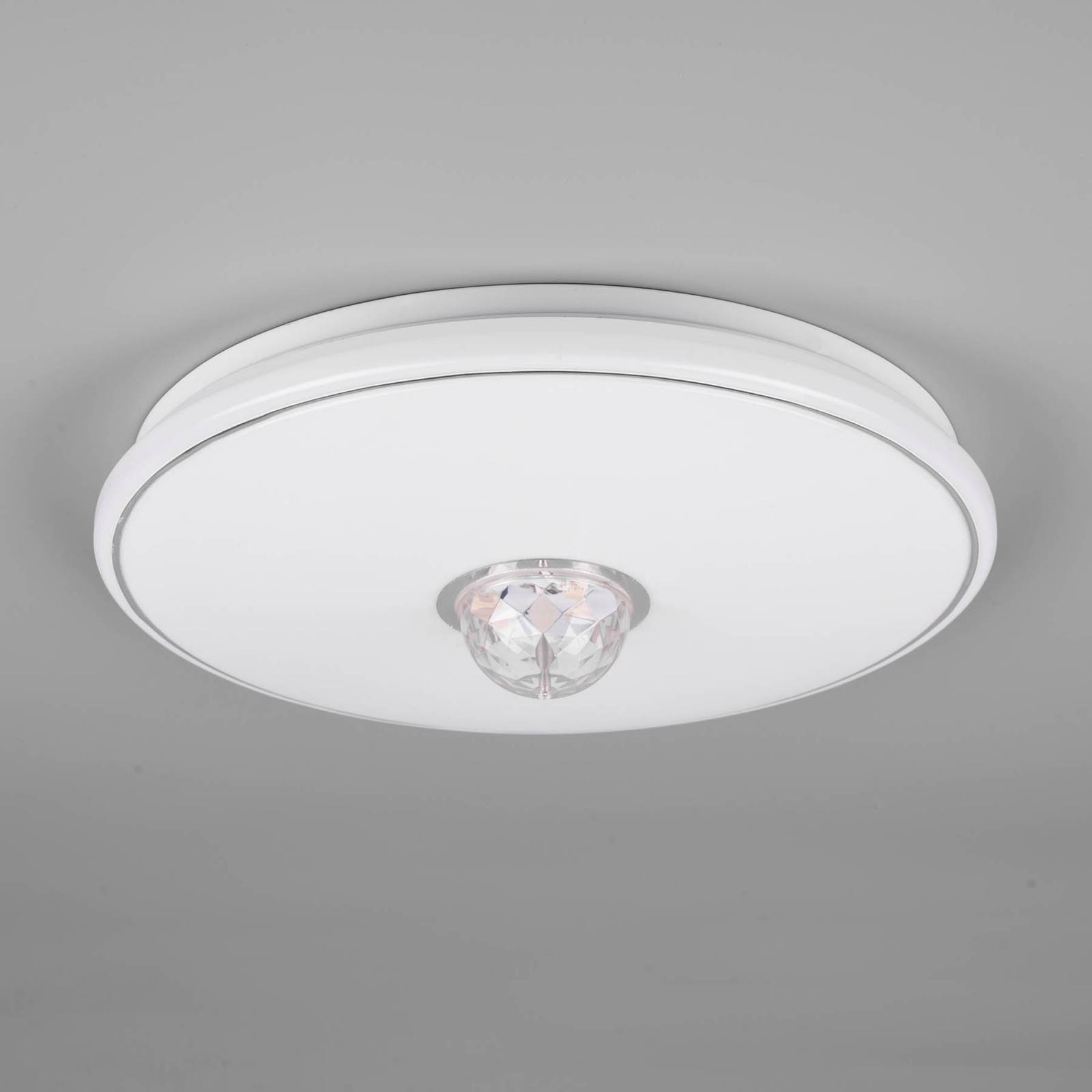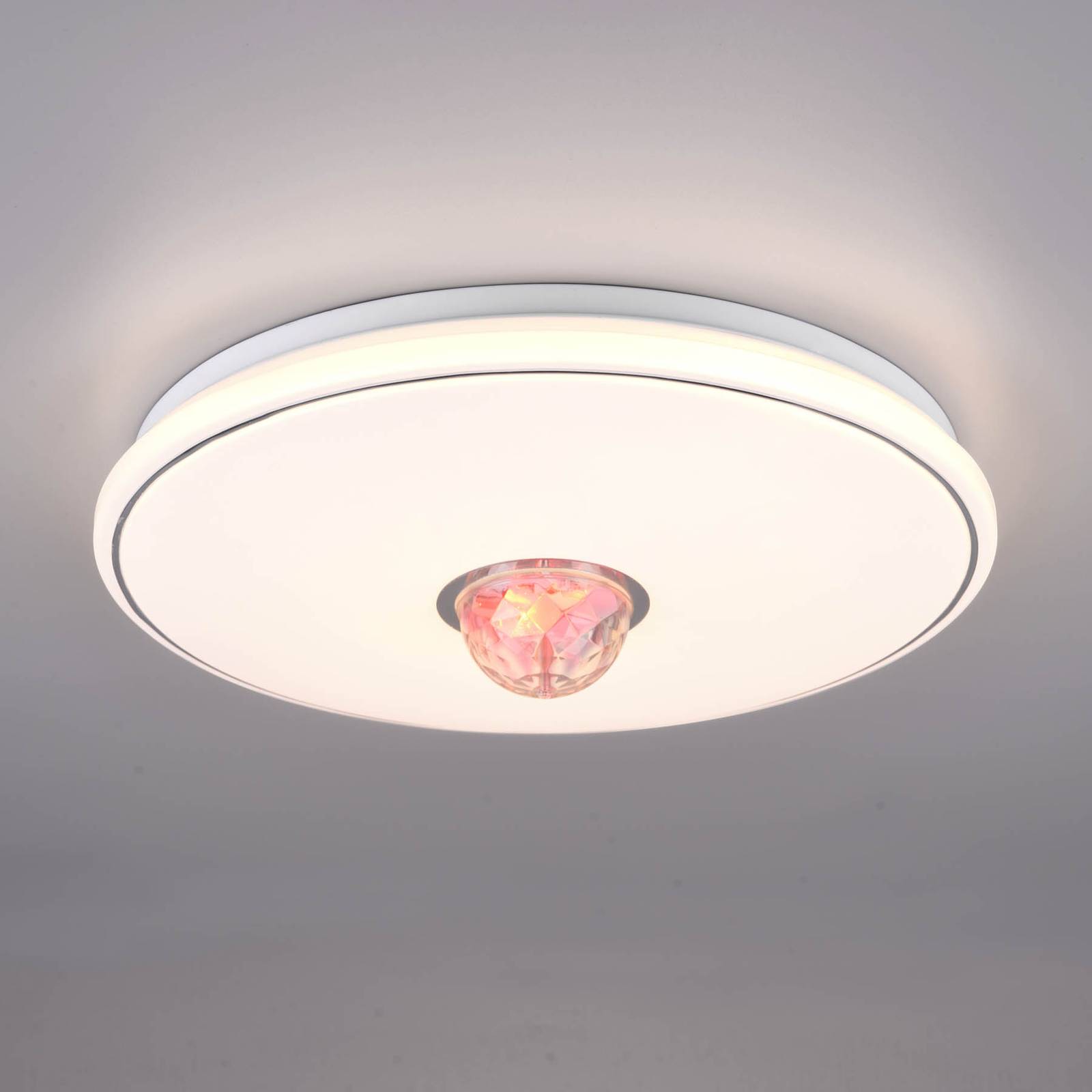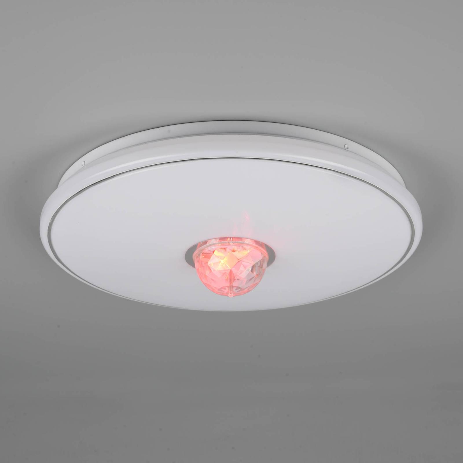 Plafoniera LED dimmerabile Rave con telecomando e palla da discoteca RGB integrata Con la plafoniera LED Rave, la festa può iniziare. L'apparecchio LED rotondo è dotato di una palla da discoteca al centro, e i LED RGB installati forniscono accenti atmosferici e colorati, nonché straordinari effetti di luce sul soffitto. Con il telecomando in dotazione, la sfera può essere commutata separatamente dal corpo. Quest'ultimo è dotato di LED a luce bianca calda, per cui Rave è adatto anche all'illuminazione generale. La luce bianca calda può essere controllata anche tramite un interruttore a parete convenzionale in tre livelli di luminosità (100 %, 50 %, 25 %).