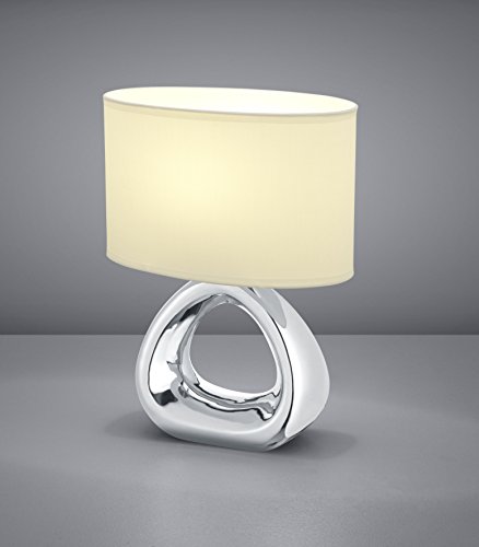 Reality Leuchten r50841089 Giza, lampada da tavolo, Ceramica, E27, Argento, 15 x 24 x 34.5 cm, argento/bianco, 15 x 24 x 34.5 cm, E27