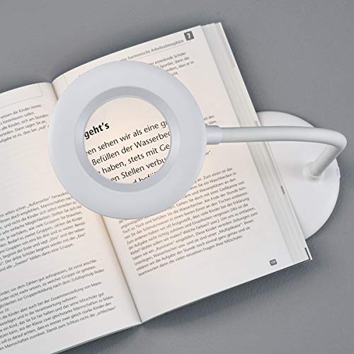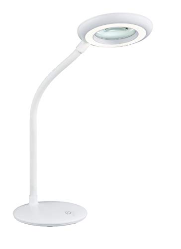 Reality Leuchten R59069901 - Lampada da tavolo a LED Dori, in plastica bianca, con LED da 3 Watt On/Off Touch, lente d'ingrandimento