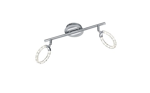 Reality Leuchten R82782107 Biarritz Barra a LED, 2 Spots Integrati in Diffusori ad Anello, Trasparente Integriert, 5 W, Nickel Satinato, 11 x 38 x 17 cm