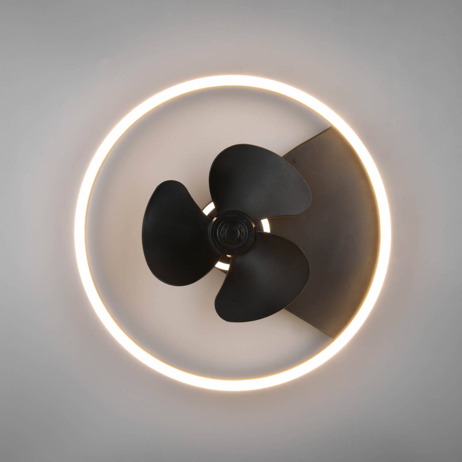Ventilatore da soffitto Borgholm - Illuminazione a LED con funzione Tunable White e memoria - controllabile tramite telecomando Il design moderno e futuristico del ventilatore da soffitto Borgholm è sapientemente combinato con LED efficienti, fissati sul lato inferiore di un anello esterno e dietro il rotore. Tre pale in plastica assicurano una piacevole circolazione dell'aria. Funzioni: La fornitura comprende un telecomando. Consente di commutare, controllare i tre livelli di velocità, impostare il timer (1h / 2h / 4h fino allo spegnimento), nonché di commutare, dimmerare e controllare il colore della luce (da bianco caldo a luce diurna). Inoltre, la funzione di memoria riattiva l'ultima impostazione selezionata dopo la riaccensione e la funzione di luce notturna fornisce una discreta luce di orientamento al buio. Dati tecnici: - circolazione dell'aria: 0,7/1,8/2,4 m³/min - potenza del ventilatore: max. 40 watt - con telecomando - luce