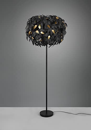 Lampada da terra Leavy in metallo nero opaco con foglie in plastica nei colori nero e oro