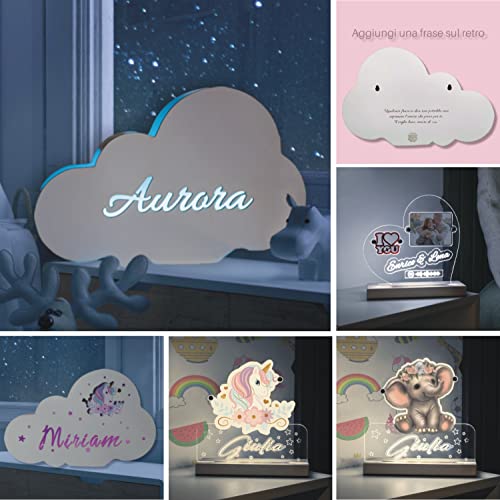 Lo Realizzo - Lampada personalizzata con nome a forma di nuvola - luce notturna bambini per la cameretta - idea regalo battesimo bambina I regalo compleanno I regalo natale (Nuvola)