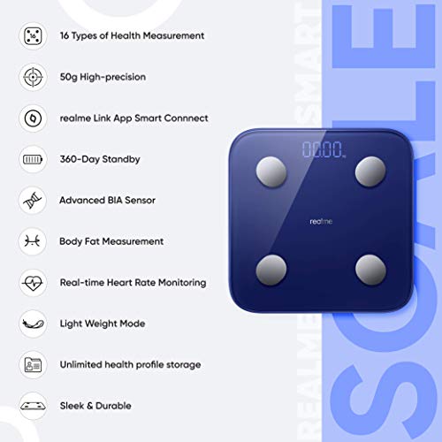 realme - Smart Body Composition, Bilancia intelligente, Bluetooth 5.0, Display LED, Batteria a lunga durata: 360 giorni, 14 dati corporei e misurazione della frequenza cardiaca, Bianco