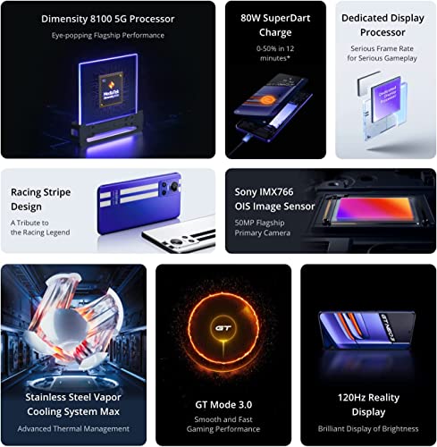 Realme GT Neo 3 Smartphone 5G Dimensity 8100 Ricarica Rapida SuperDart 80W 8GB + 256GB Display 6.7" AMOLED Display 120Hz 5000mAh Batteria 50MP Tripla Fotocamera Dual SIM Android 12