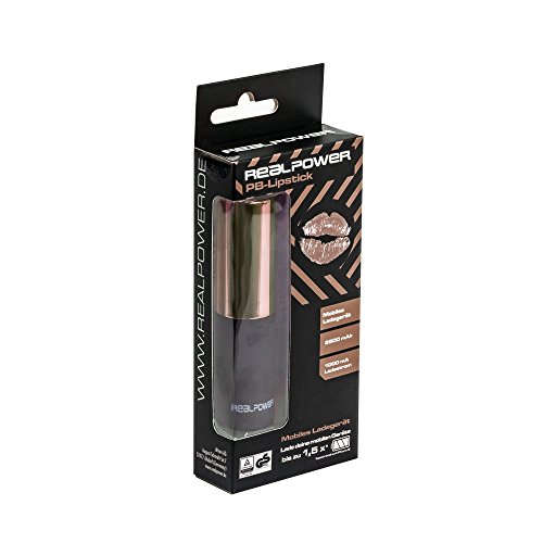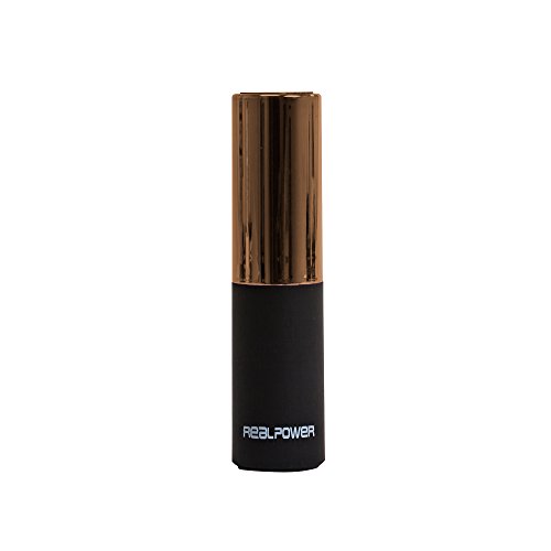 RealPower PB-Lipstick, batteria esterna da 2500 mAh, 1 uscita USB per iPhone, Samsung Galaxy e altri (nero/oro)