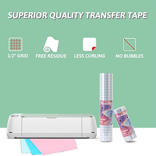 Realth Transfer Paper Tape Roll 30,5 cm x 15 m Griglia di allineamento Trasparente Trasferimento autoadesivo per nastro in vinile Lavoro manuale Modello personalizzato (TP640)