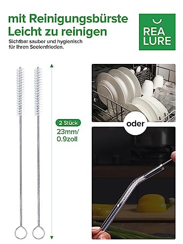 Realure Set di 7 Cannucce Vetro Riutilizzabili, Cannucce di Vetro Trasparenti, Cannuccia Vetro da 10 e 12 mm di Larghe, Cannucce in Vetro 21.5cm per Bere, Cocktail, Succhi, Clearwater (Curvo)