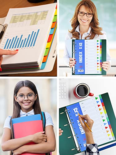 【Divisori A4 per raccoglitori ad anelli】 Sono disponibili divisori per raccoglitori con fori perforati, 2-5 fori. Organizzazione facile e veloce. Poiché i divisori in cartone sono in plastica, i bordi della carta divisoria dei documenti e i bordi dei fori non si strappano. Particolarmente comodo per tenere organizzati gli appunti e per distinguere le diverse sezioni e girare le pagine.