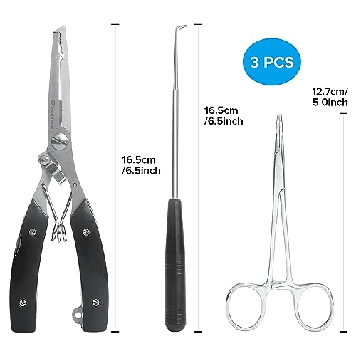 Realure 3 Pezzi Set di Pinza Pesca Portatili con Cordino, Include Pinze da Pesca Curva, Pesca Slamatore, Pinze Pesca Multifunzione per Rimuovere Ami, Anelli Apribili, Regalo per la Pesca da Uomo