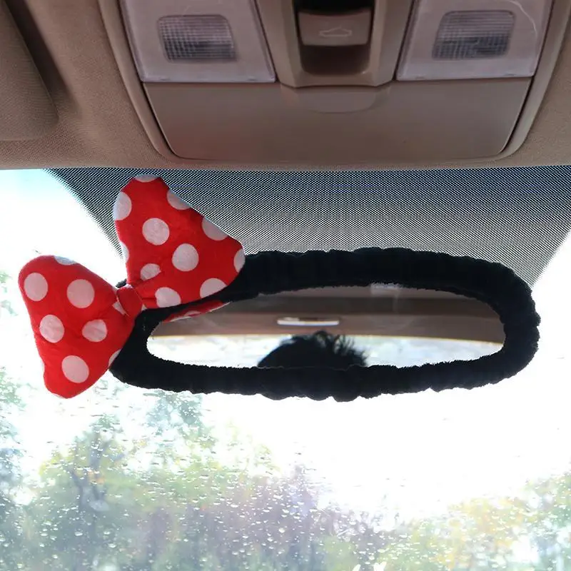 Car Rearview Mirror Cover Cute Polk Dot Bow Cartoon Plush Animal Rabbit Lovely Interior Decorative Fashion Auto Accessories