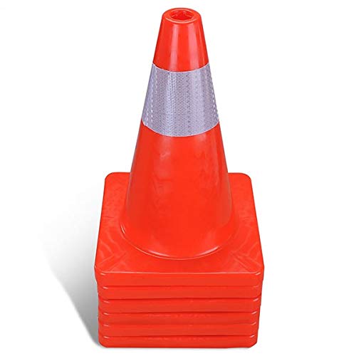 ReaseJoy 18"(450mm) Fluorescent Red PVC Road Traffic Cone with Reflective Strip Safety Parking Cones set of 6pcs
