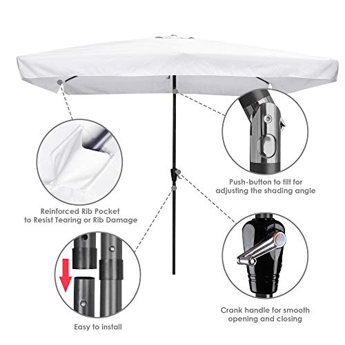 ReaseJoy Alluminio/Legno da Giardino, Patio ombrellone Parasole per Cafe Store Festa di Nozze Spiaggia, White, 3x2m(9.8'x6.5') 6-Rib