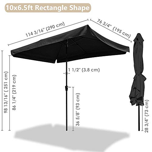 Reasejoy alluminio/legno da giardino, patio ombrellone parasole per Cafe Store festa di nozze spiaggia, Black, 3x2m(9.8'x6.5') 6-Rib
