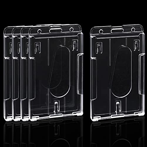 【Dettaglio dimensioni】Riceverai 5 porta badge doppio lato,porta badge verticale rigido Dimensioni interne (H x L): 8,5 cm x 5,5 cm,5 mm di spessore, spazio per 2 carte di credito standard di 8,5 x 5,5 cm.