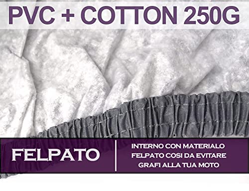 ️ Telo Copri moto sagomato in materiale PVC + Cotton 250G, con materiale felpato al suo interno per evitare graffi indesiderati sulla parte esterna dello scooter, moto o motociclo