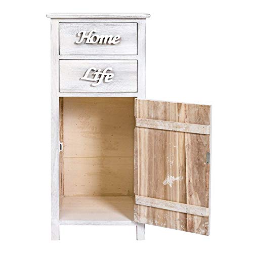 Rebecca Mobili Armadietto bianco, mobile bagno, 1 anta 2 cassetti, legno, stile shabby, per arredamento camera - Misure: 84 x 37 x p 30 cm (HxLxP) - Art. RE4575
