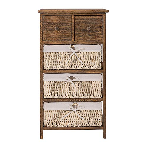 Rebecca Mobili Cassettiera Credenza Rustica, 2 Cassetti 3 Ceste, Legno Vimini, Marrone Scuro, Arredo Bagno Cucina - Misure: 80 x 40 x 27 cm (HxLxP) - Art. RE4059