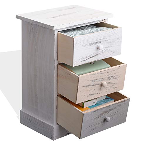 Rebecca Mobili Cassettiera decape, comodino con 3 cassetti, legno di paulonia, bianco beige grigio, stile retro, camera bagno - Misure: 54 x 37 x 27 cm (HxLxP) - Art. RE4263