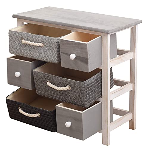 Rebecca Mobili Cassettiera 6 cassetti, mobile multiuso moderno, legno vimini, bianco grigio, per camera e bagno - Misure: 53 x 56 x 27 cm (HxLxP) - Art. RE4326