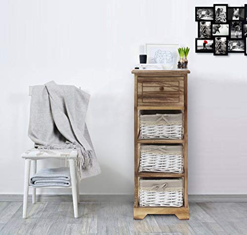 Rebecca Mobili Cassettiera Mobiletto Bagno 1 Cassetto 3 Ceste Legno Vimini Marrone Chiaro Country Bagno Cucina Arredamento Casa - 81 x 30 x 27 cm (H x L x P) - Art. RE6106