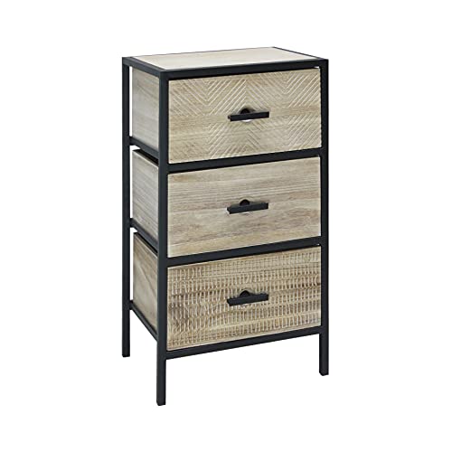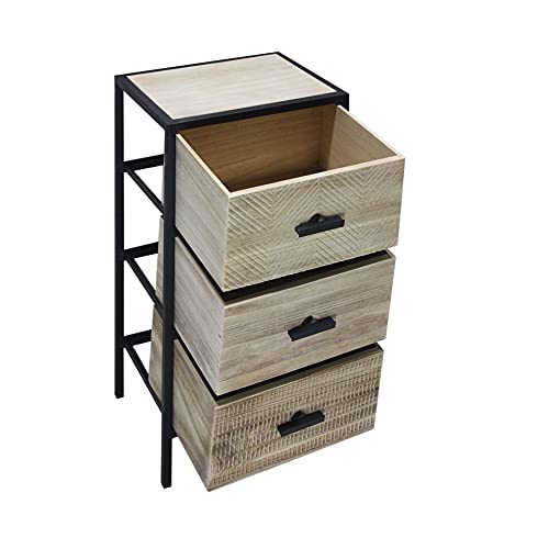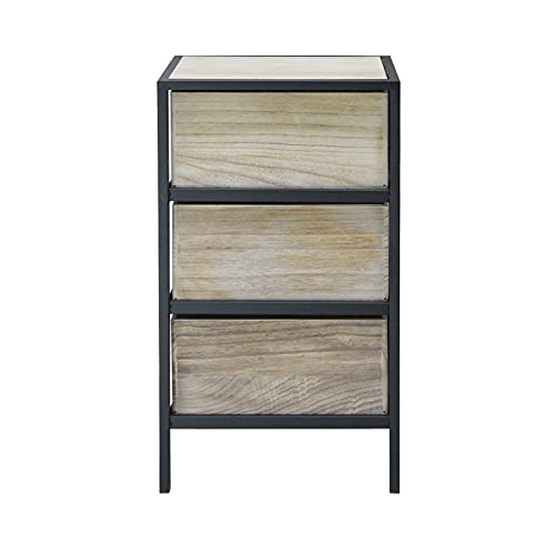 SPECIFICHE: Misure: H 66 x L 35 x P 25 cm - Misure cassetti: H 16,5 x L 31,5 x P 23 cm - Materiale: Legno di Paulownia, metallo - Colore: Beige, nero - Montato: Sì - Cod. RE6602