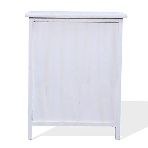 Rebecca Mobili Comodino Piccolo, Mobile Bagno 2 cassetti, Legno Paulownia, Bianco, Shabby, Camera da Letto Bagno - Misure: 51 x 40 x 29 cm (HxLxP) - Art. RE4566