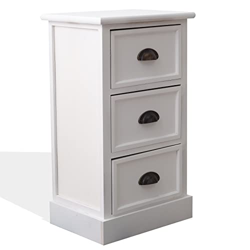Rebecca Mobili Comodino provenzale, mobiletto 3 cassetti, legno bianco, per camera da letto bagno - Misure: 63 cm x 37 x 27 cm (HxLxP) - Art. RE4561