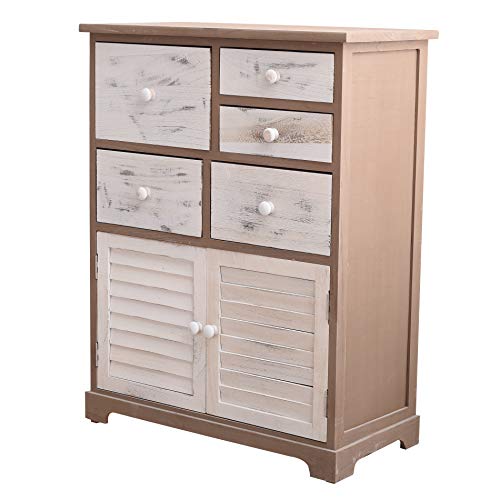 Rebecca Mobili Credenza da bagno, armadietto grigio marrone bianco, con 2 ante 5 cassetti, stile decapato, per camera da letto e bagno, home decor - Misure: 77 x 60 x 30 cm (HxLxP) - Art. RE6075